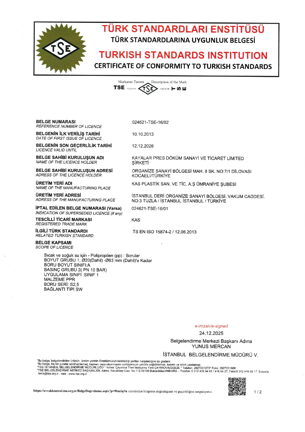 Plastik Grubu TSE Belgeleri